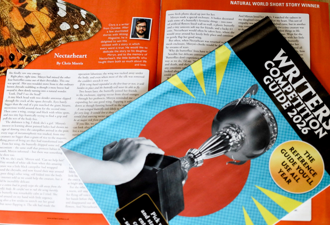 They also publish the winning stories from their contests, including - in the current (January 2026) issue - Nectarheart, a touching story by our new editor, Chris Morris. (Welcome to London Fog, Chris!)